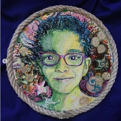 RETRATOS PEQUEÑOS: 20 cm de diámetro, técnica mixta incluyendo tintes naturales, caseros y acrílicos.